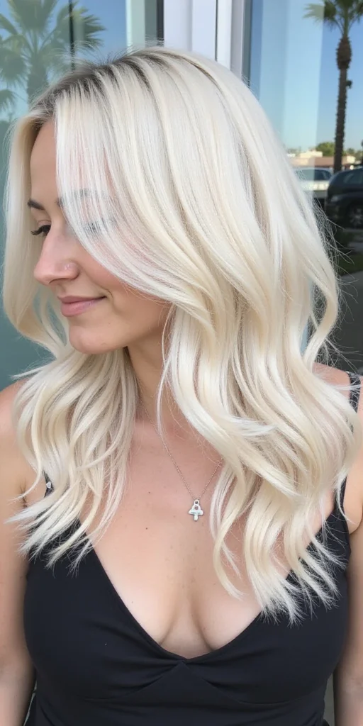 Platinum Blonde for a Sleek, High-Contrast Beach Style